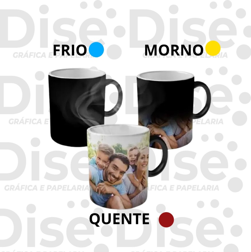Caneca Mágica Personalizada possui um efeito especial que revela a estampa ao entrar em contato com bebidas quentes, tornando cada uso uma experiência única.